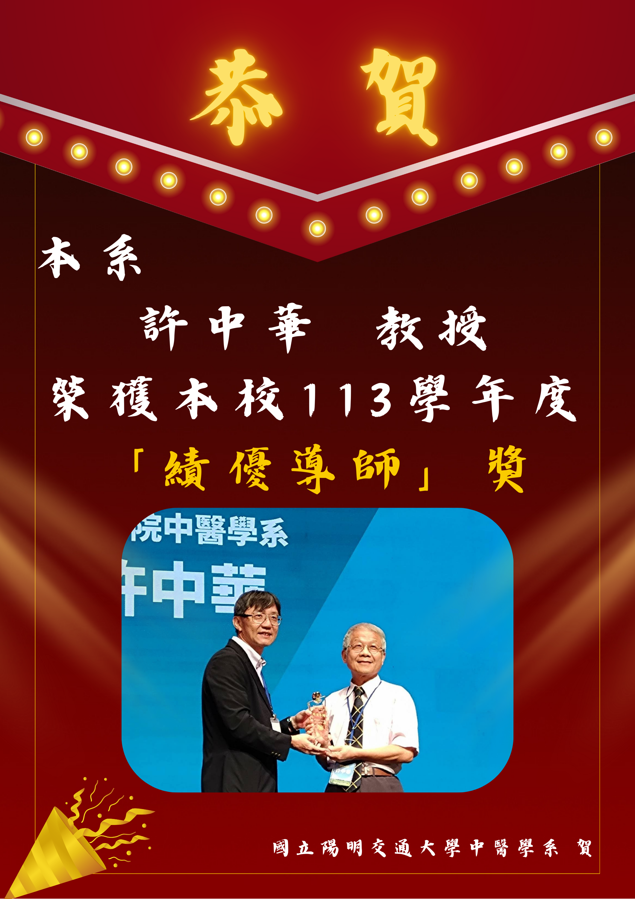 恭賀!許中華教授榮獲本校113學年度「績優導師」獎