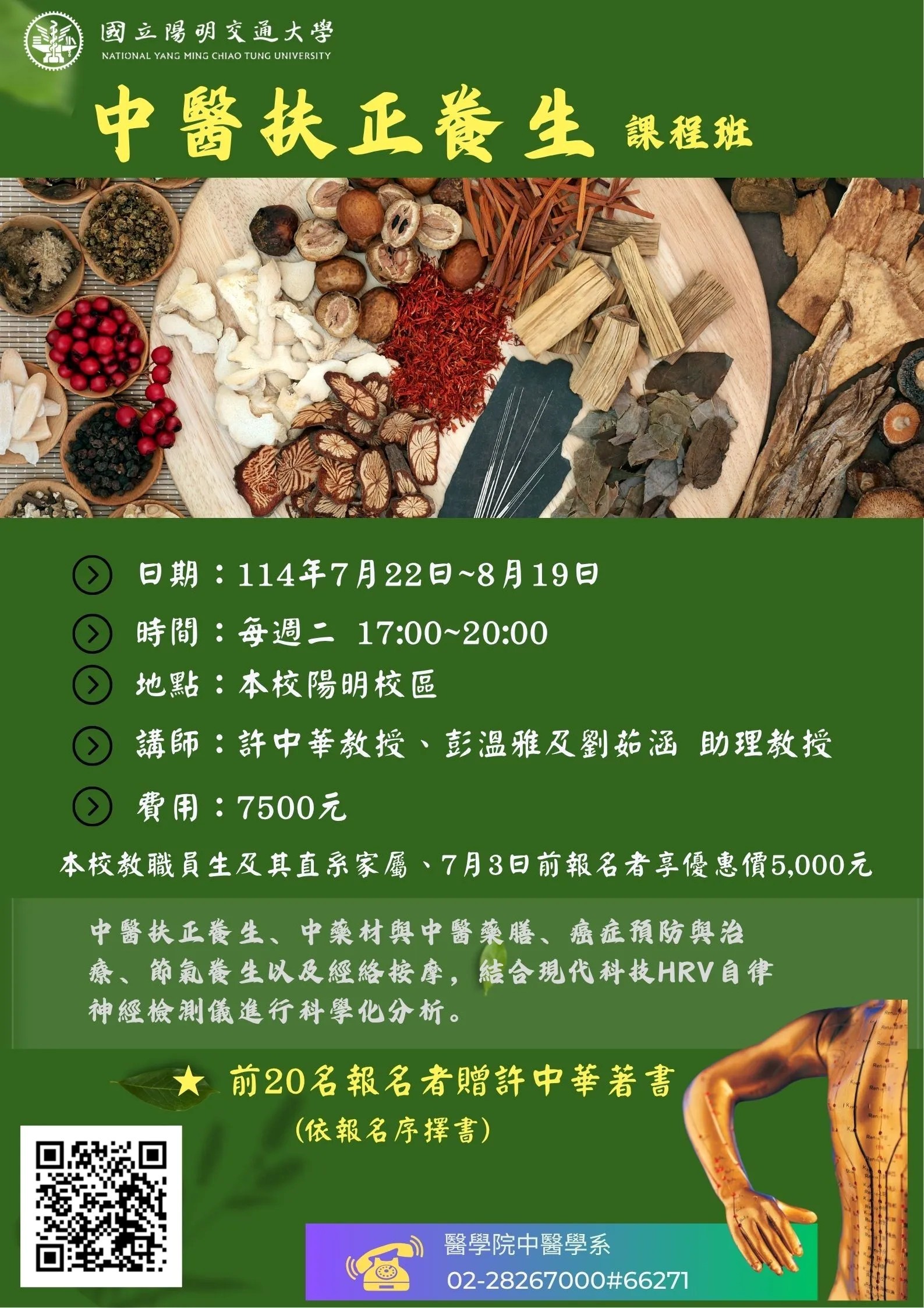 2025年中醫扶正養生課程暑期班開始報名囉~